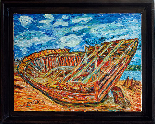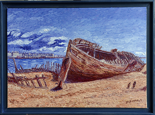 Carcasse d'un vieux tonnier - Huile sur Toile 35x27cm (F5)