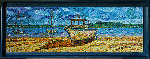 Baie Ste Anne à L'Ile Renote - huile sur Toile 20x60cm
