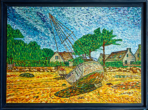 Cimetière de bateaux au port de Ploumanac'h - Huile sur Toile 50x70