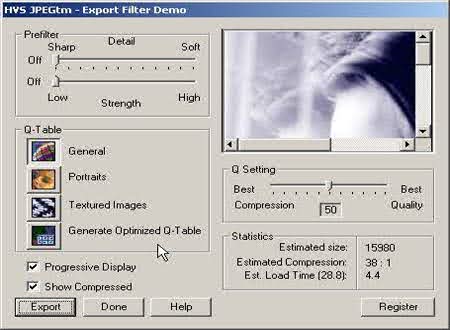 Voir à maintenant à SPINWAVE. HVSJPEG 2.0 : un plug'in de compression JPEG que j'aime bien, il est compatible avec Paint Shop Pro. Ci-dessous la démo. |