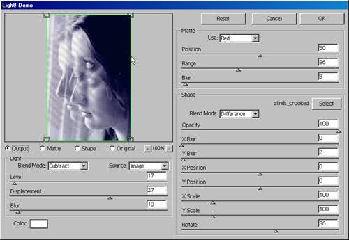 DFT Filter Bundle : Snap 2.5 : zMatte 3 : Light! : Il vous permet de créer une variété d'effets de la lumière, de la simple lumière journalière à travers une fenêtre ou une porte, à des brumes rougeoyantes et rayonnantes. Un excellent Plug'in à avoir sous la main ! Ci-dessous la démo. |