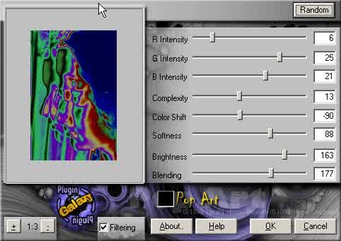 Nirvana : 4 effets, "disco ball on the floor", Raspberry Texture, Sinfinity et Radial Sinality. il est compatible avec Paint Shop Pro, PhotoPaint, Painter, FireWorks et Illustrator. Pour système d'exploitation Windows. Cryptology : un filtre de cryption d'image, compatible avec Paint Shop Pro, PhotoPaint, Painter, FireWorks et Illustrator. Pour système d'exploitation Windows. PluginGalaxy : un outil de génération de texture.Pour système d'exploitation Windows. Ci-dessous la démo. |