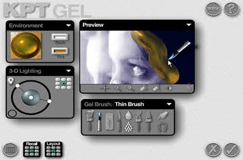 KPT Convolver : Compatible avec Paint Shop Pro, PhotoPaint, Painter, FireWorks et Illustrator. Pour système d'exploitation Mac & Windows. KPT3's Actions : une mise à jour aux Kai's Power Tools 3. Pour système d'exploitation Mac & Windows. KPT Gel : maintenant intégré à KPT 6.0. Ci-dessous la démo de Gel. Pour système d'exploitation Mac & Windows. |