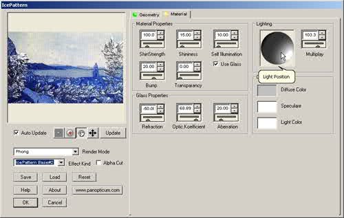 Lens Pro 1.1 : Un ensemble de 7 effets. il est compatible avec PhotoPaint et Illustrator. Panopticum Lens Pro 3.0 : Lens Pro II : PhotoFX : Digitalizer : Engraver : Fire 3 : différents effets. Strip : Alpha Strip : effets de masques alpha. Plugin Galaxy 1.0 : Ice Pattern 1.0 : Ci-dessous la démo |