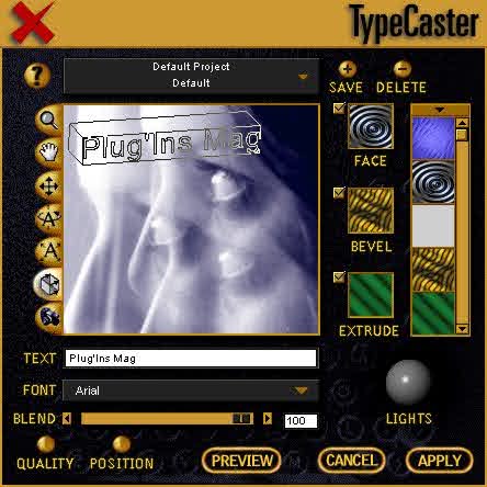 Type Caster : il est compatible avec Paint Shop Pro, PhotoPaint, Painter et Illustrator. Ci-dessous la démo. |