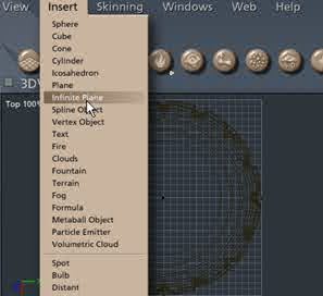 Etape 9 : Dans la barre de menu, cliquez sur Insert, Infinite Plane, comme sur la figure ci-dessous. |