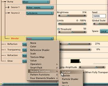 puis revenez dans Dump, cliquez sur le bouton Blender pour ouvrir le menu déroulant, puis cliquez sur Natural Functions, Cellular, comme sur la figure ci-dessous, |