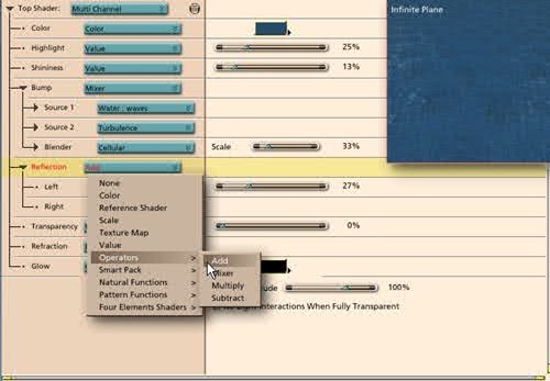 recliquez sur Bump « Water Waves », puis cliquez sur Operators, Mixer, comme sur la figure ci-dessous. |