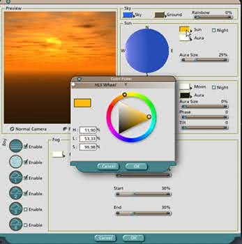 cliquez maintenant sur le bouton de Preset, et cliquez sur Warm sunrise, puis cliquez sur l'éditeur de ciel (Edit), comme sur la figure ci-dessous. |