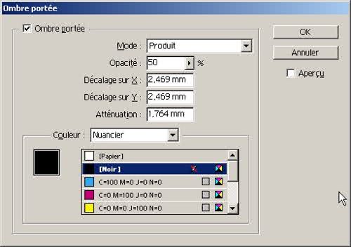 cochez la case Ombre portée, mettez Opacité à 50, comme sur la figure ci-dessous... |
