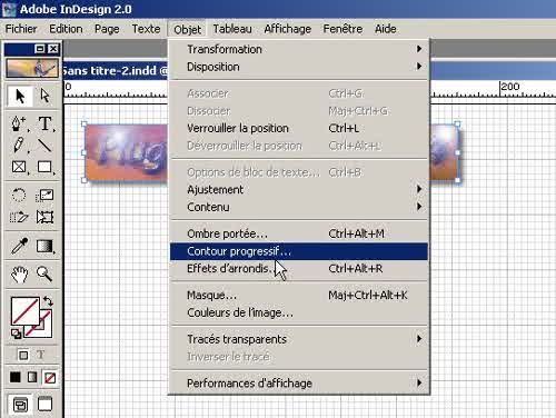 Etape 5 : toujours dans le menu déroulant « Objet », cliquez maintenant sur « Contour progressif...», comme sur la figure ci-dessous... |