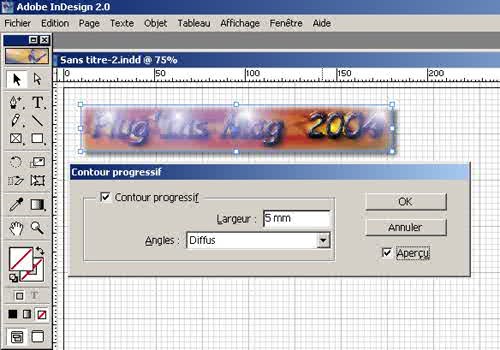 cochez la case « Contour progressif », à « Largeur » mettez 5mm et à « Angles » Diffus, comme sur la figure ci-dessous. |