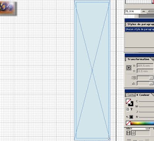 Etape 6 : Cliquez sur « Outil Bloc rectangulaire » puis tracez un nouveau rectangle, cette fois à l'intérieur du calque de couleur pale à droite du document en faisant un petit blanc tournant, comme sur la figure ci-dessous, puis dans l'onglet transparence, mettez éclaircir. |