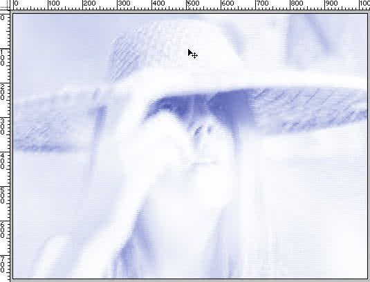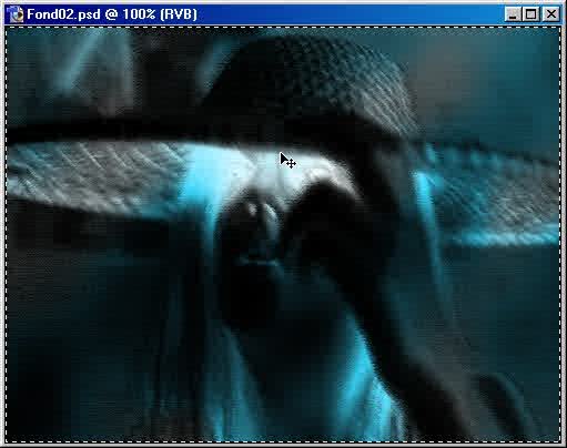 Etape 8 : Revenez à la photo du début et vous la transformez en négatif, (dans le menu Image, cliquez sur Réglages, Négatif). Puis retournez l'image (dans le menu Image, cliquez sur Rotation de la zone de travail, symétrie horizontale de la zone de travail). Voir la figure ci-dessous. |