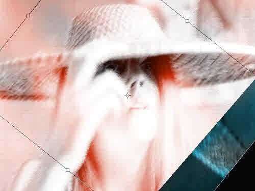 Etape 10 : Toujours sur le calque Angle de Corne, vous allez incliner votre image collée dedans (dans la menu édition, cliquez sur Transformation, puis sur Rotation). Voir la figure ci-dessous. |