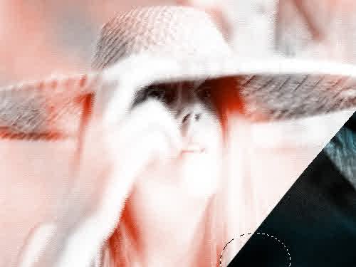 et à l'aide du Lasso Polygonal (dans la palette outils), tracez un angle de sélection à l'endroit de la corne (évidemment on incline l'angle en fonction de la corne que l'on veut obtenir). Comme sur la figure ci-dessous. |