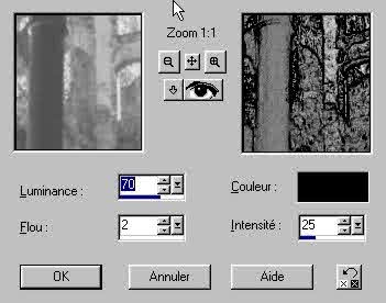 Etape 3 : Dans le menu Effets, cliquez sur Effets, Effets artistiques, Contours Colorés. Mettez la luminance à 70, le Flou à 2 et l'intensité à 25, comme sur la figure ci-dessous. |