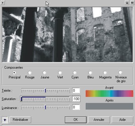 Etape 2 : Dans le menu Image, cliquez sur Ajuster/Saturation/Luminance et réglez les paramètres comme sur la figure ci-dessous. |