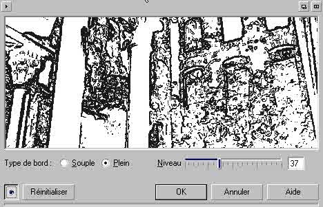 Etape 3 : Dans le menu Effets, cliquez sur Projection, Recherche des bords et réglez les paramètres comme sur la figure ci-dessous. |