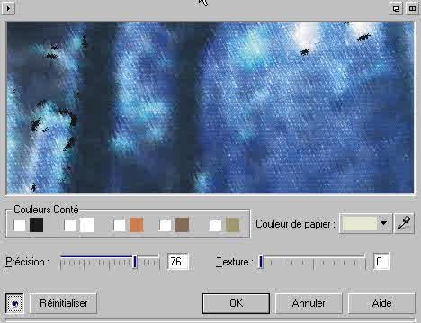 Etape 7 : Dans le menu Effets, cliquez sur Coups de pinceau artistiques, Crayon de couleur Conté et réglez les paramètres comme sur la figure ci-dessous. |