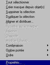 Etape 9 : Puis dans le menu Edition, cliquez sur Coller, Coller comme nouvel objet. Et oui vous avez collé l'image qui était dans votre presse-papiers, vous remarquez qu'elle figure en tant que nouveau masque, donc évidemment il vous faut l'additionner à l'image précédente. Cliquez avec le bouton droit de la souris pour avoir le menu contextuel, puis cliquez sur Propriétés... comme sur la figure ci-dessous. |