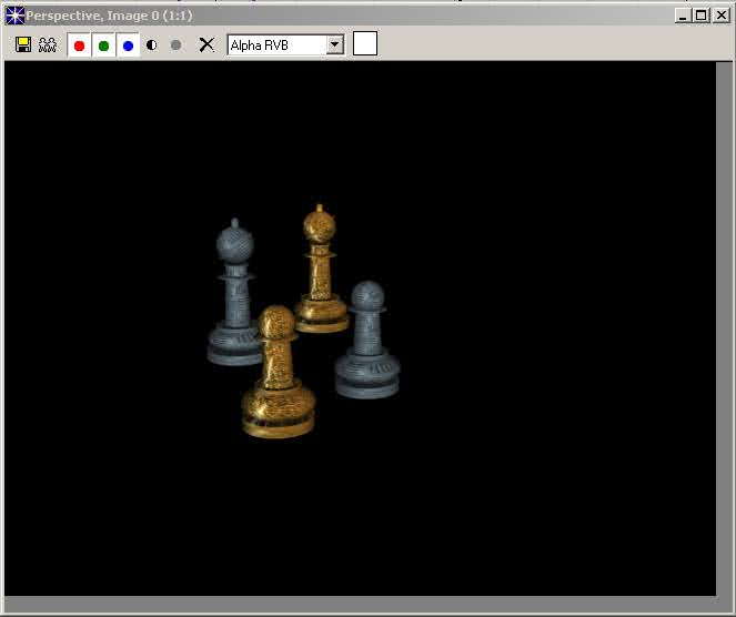 Etape 10 : Sélectionnez les objets en les entourant, puis dans le menu Groupe, cliquez sur groupe, puis nommez-le « Fou ». Dans le menu Edition cliquez sur Copier et vous nommerez le nouvel objet « FouOr01 », puis cliquez encore une fois sur Copier et nommez « FouArgent01 ». Il ne vous reste plus qu'à mettre les textures concernées sur « FouOr01 » et « FouArgent01 », dans le menu Outils, cliquez sur Editeur de matériaux. Puis dans l'Editeur de matériaux cliquez Textures. Chargez les Types de Texture Bitmap GOLDFOIL et MtlPlat2. Puis petit rendu pour vérifier votre travail, puis sauvegardez et passez à la Troisième partie de ce Tutorial, la création de la Tour. |