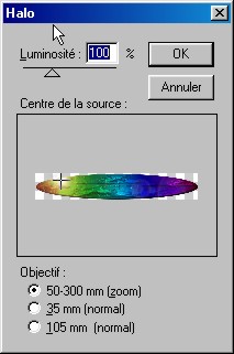 Etape 6: Il ne vous reste plus qu'à mettre un halo. Dans le menu filtre cliquez sur rendu puis halo, règlez l'objectif à 50-300mm, comme figure ci-dessous.