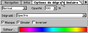 Etape 3: Puis cliquez sur l'outil dégradé et dans options de dégradé linéaire mettez l'option spectre voir figure ci-dessous.(mettre le spectre n'est qu'un exemple)