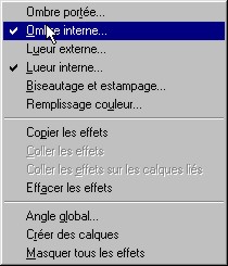 Etape 4: Maintenant dans le menu calque cliquez sur effets ombre interne comme figure ci-dessous.