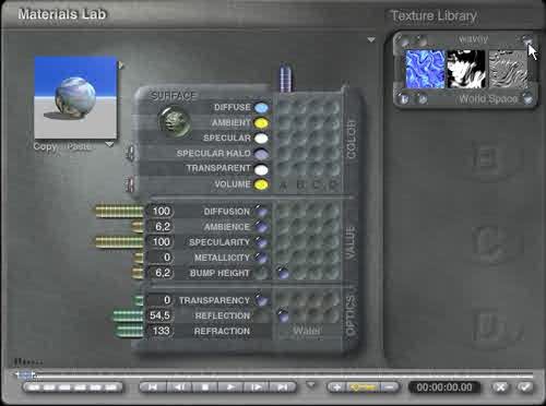 Une fois dans l'éditeur de Matériaux, cliquez sur le bouton de la librairie de Textures (où se trouve le pointeur sur la figure ci-dessous), |