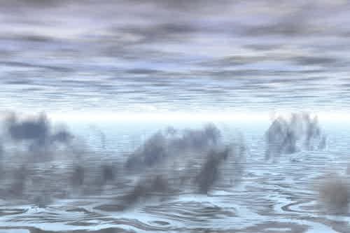 Etape 5. Dupliquez la nappe de brume ainsi obtenue en la déplaçant à différents endroits (dans le menu Edit, Duplicate), comme sur la figure ci-dessous. |