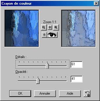 Etape 5 : Retournez dans le menu Effets, cliquez sur Effets artistiques / Crayon de couleur, et réglez les paramètres comme sur la figure ci-dessous. |