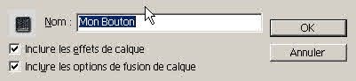 Nommez-le "mon Bouton", cochez Inclure les effets de calque et Inclure les options de fusion de calque, puis cliquez sur Ok, comme sur la figure ci-dessous. |