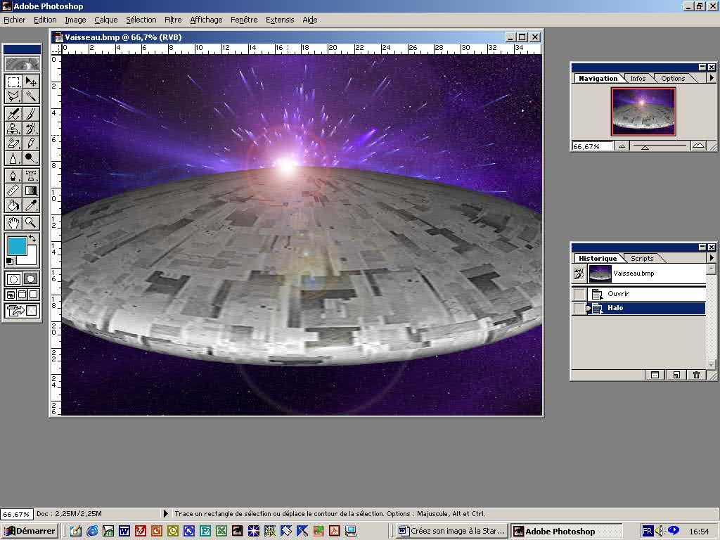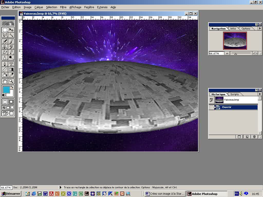 Etape 6 : Maintenant vous pouvez la finir avec Photoshop. Chargez Photoshop, dans le menu Fichiers ouvrir votre fichier comme ci-dessous. |