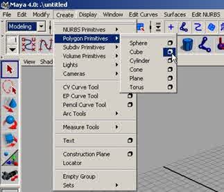 Etape 1 : Dans la barre de menu, cliquez sur File > New Scene et cliquez sur le module de modélisation, si ce n'est déjà fait. Etape 2 : Dans « Create > Polygon Primitives > Cube » de la barre de menu, cliquez sur l'icône en forme de cube, où se trouve le pointeur sur la figure ci-dessous, |