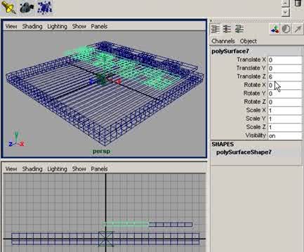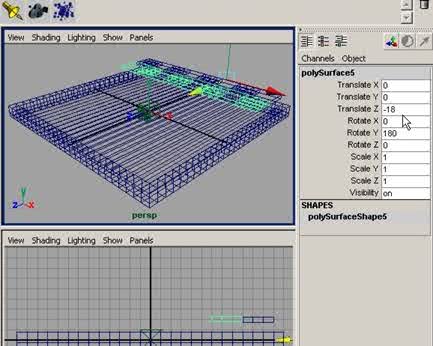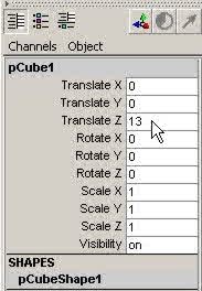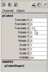 dans la boîte des canaux, réglez les paramètres de pCube1 comme suit, Translate en Z 13 et validez, voir la figure ci-dessous. |