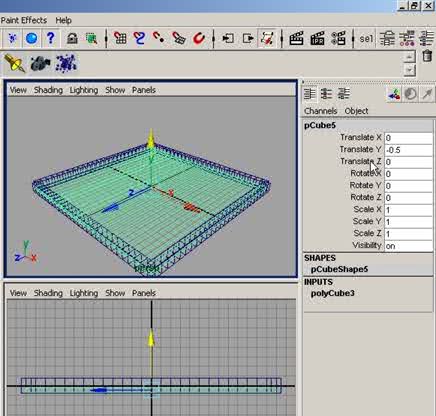dans la boîte des canaux, réglez les paramètres de pCube5 comme suit, Translate Y -0.5 et validez, voir la figure ci-dessous. |