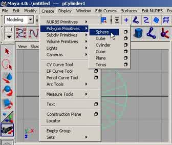Etape 2 : Dans la barre de menu : sur Create > Polygon Primitives > Sphere, comme sur la figure ci-dessous. |