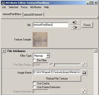 cliquez sur l'onglet PhongE1, et dans la section Common Material Attributes, à Color, cliquez sur le bouton en forme de damier, comme sur la figure ci-dessous. |
