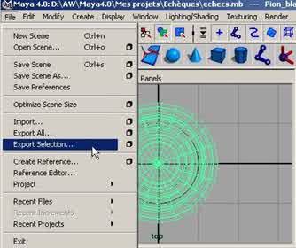 Etape 12 : Exportez la Tour Blanche, dans votre bibliothèque d'objets, dans la barre de menu, cliquez sur File > Export Selection, comme sur la figure ci-dessous. |