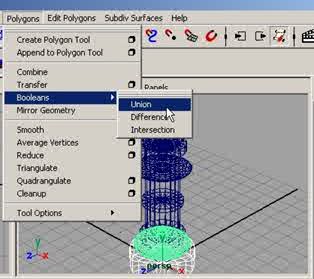 Etape 11 : Assemblez les polygones en un seul objet, sélectionnez le pCylinder1 puis avec la touche Maj enfoncée, le pSphere1, puis dans la barre de menu, cliquez sur Polygon > Booleans > Union, comme sur la figure ci-dessous. |