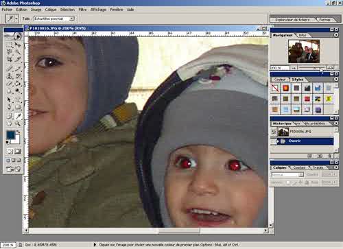 Etape 2 : agrandissez la photos à 200% dans la barre de navigation, comme sur la figure ci-dessous. |
